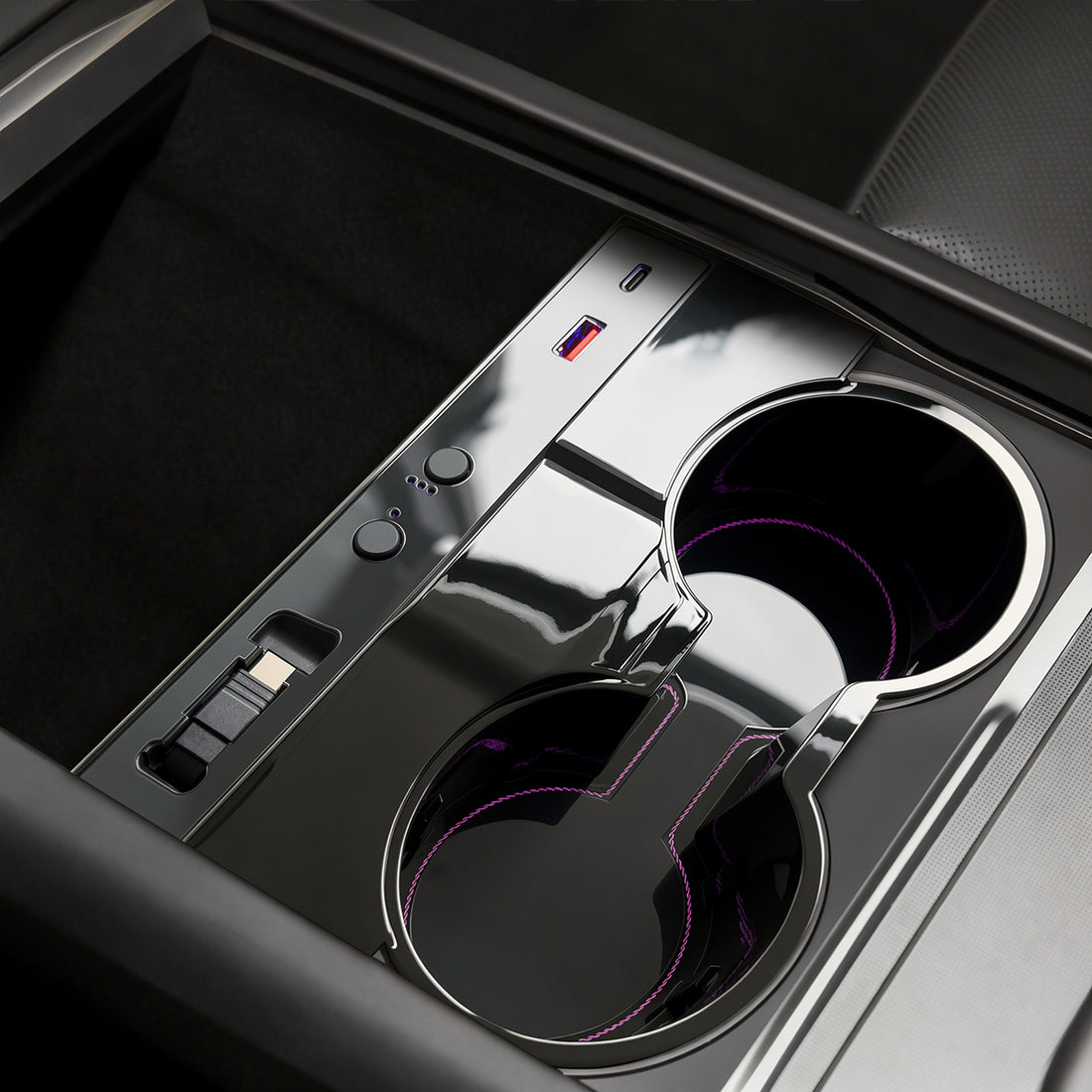 Console Cup Holder Expansion Dock with Lighting for Tesla Model 3 Highland / Y Juniper