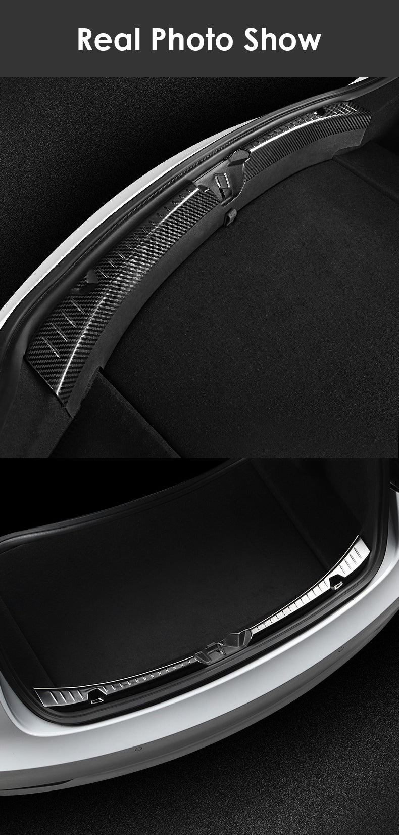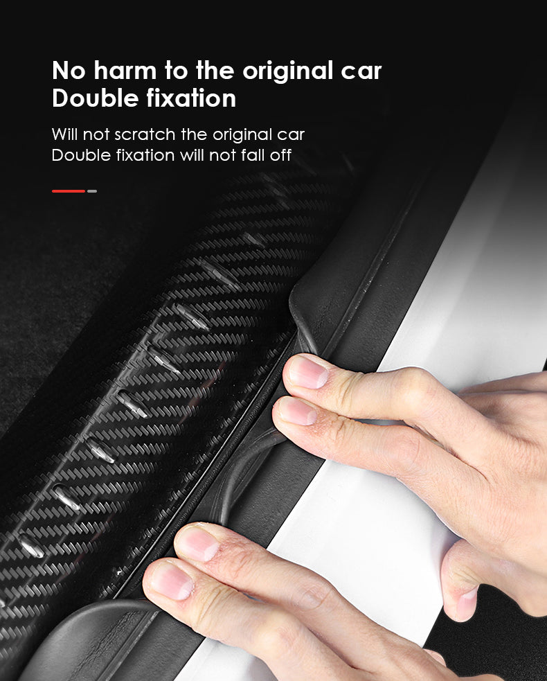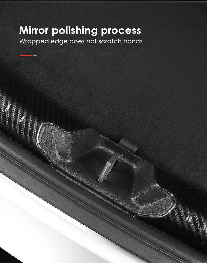 - Esta tira interior del maletero del Tesla Model 3 resistente a los arañazos está hecha de acero inoxidable de alta calidad con textura de fibra de carbono en la superficie, que es a prueba de polvo y resistente al desgaste para proteger el marco de la puerta del coche. Muy adecuado para Tesla Model 3 2017-2023.