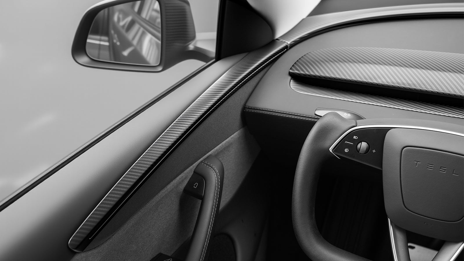 Upgrage your Model Y Juniper interior with genuine dry carbon fiber door trim covers. Precision-molded 1:1 from OEM data and lightweight durability, these overlays bring a luxury touch while protecting your original panels from scratches and wear. Seamlessly integrates with factory ambient lighting—no glare, no obstruction.