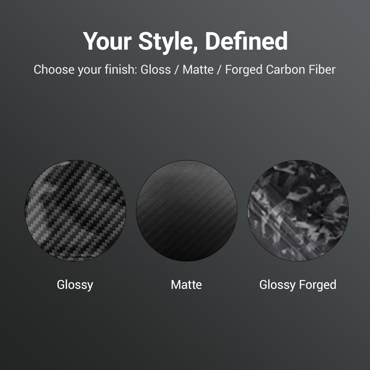 For owners seeking ultimate personalization, we also offer a complete set of carbon fiber interior upgrade components. From dashboard cover overlay to door trim cover, carbon fiber interior trim pieces perfectly complement each other,elevating your car's interior with a dynamic, sporty style.