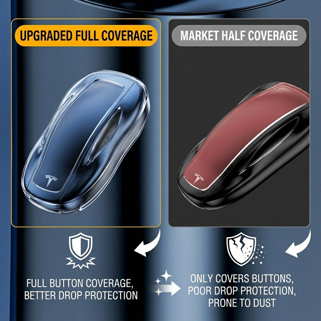 Utilizing advanced CNC numerical control cutting, every curve is carved to 1:1 precision with the original key. The upgraded design fully wraps around the key fob, offering superior drop protection and effectively sealing out dust, grit, and liquids to keep your key looking brand new.