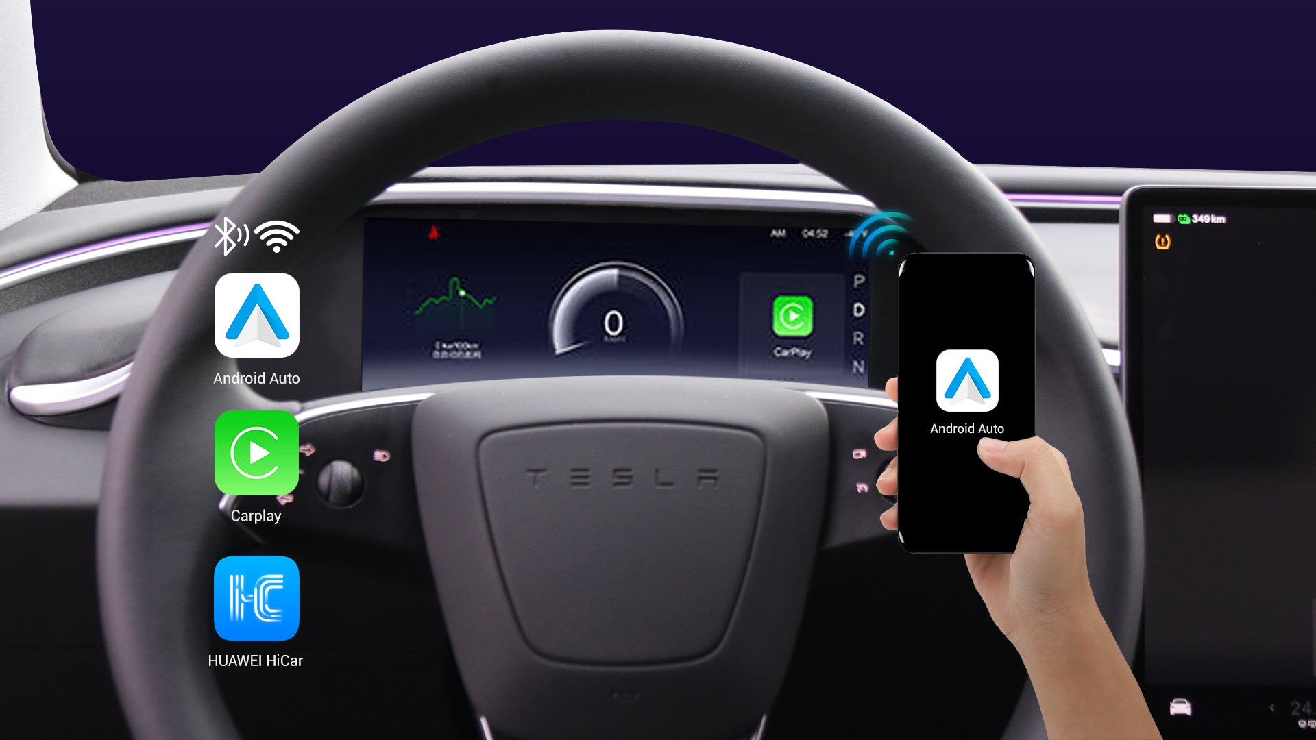 - Wireless CarPlay & Android Auto & HUAWEI HiCar: Connect to the meter via Wi-Fi or Bluetooth for an intuitive and convenient experience.Enjoy effortless access to your smartphone apps directly on the display.