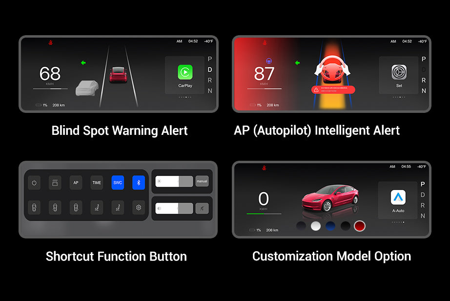Smart Reminder System + Quick Keys + Customize Color Car Model . Upgrade functions, simplified operation, personalized interface—drive smarter in one glance.