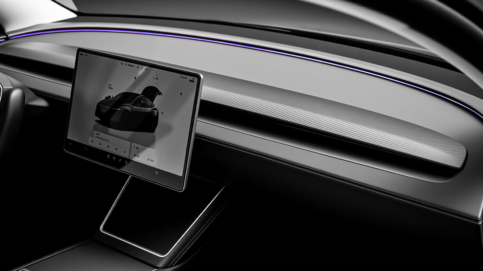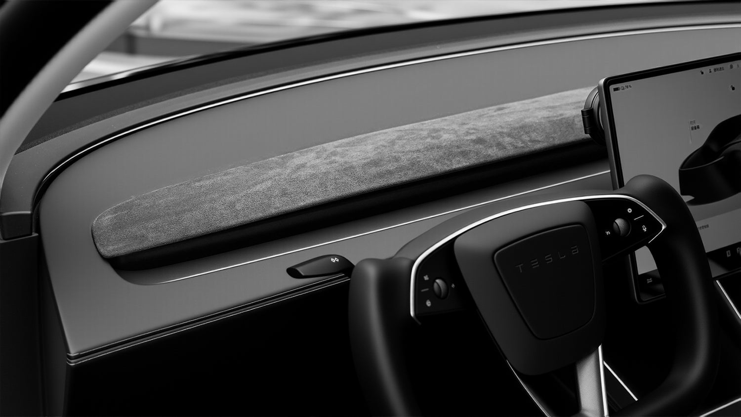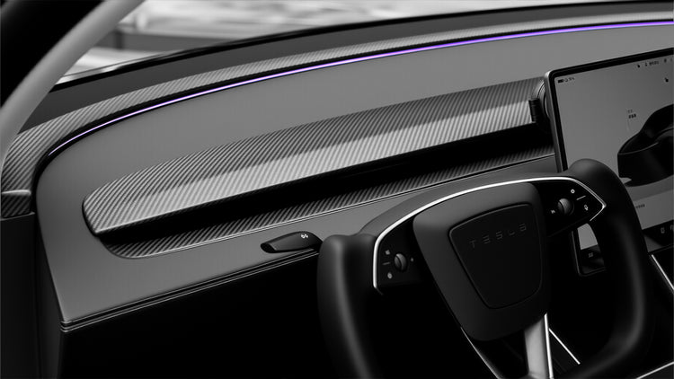 Our dashboard cover is made from dry carbon fiber, the same lightweight, ultra‑strong material used in racing and aerospace. Unlike traditional wet carbon, dry carbon is lighter, thinner, and has a deeper, richer weave pattern. The result? A refined, high‑performance aesthetic that feels like it came straight from Tesla’s design studio.
