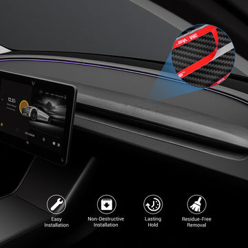 Tired of fingerprints, sticky tech-fabric and plain dash? Upgrade your Tesla Model Y Juniper's interior with Dry Carbon Fiber Dashboard Cover, available in multiple configurations to suit your style and needs. Crafted from real dry molded carbon fiber, offering a cohesive, high-end look for your cabin.Snaps on in seconds, shielding the surface from scratches and sun fade while adding a sleek, race-inspired look. Instantly upgrade your cockpit to luxe, low-glare, and forever-clean.